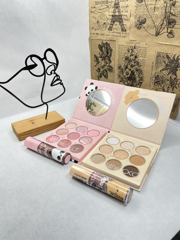 پالت سایه 9 رنگ و رژلب مایع ست KEVIN & COCO یک پالت سایه به همراه یک رژلب مایع مات هماهنگ با تناژ رنگی سایه می باشد .